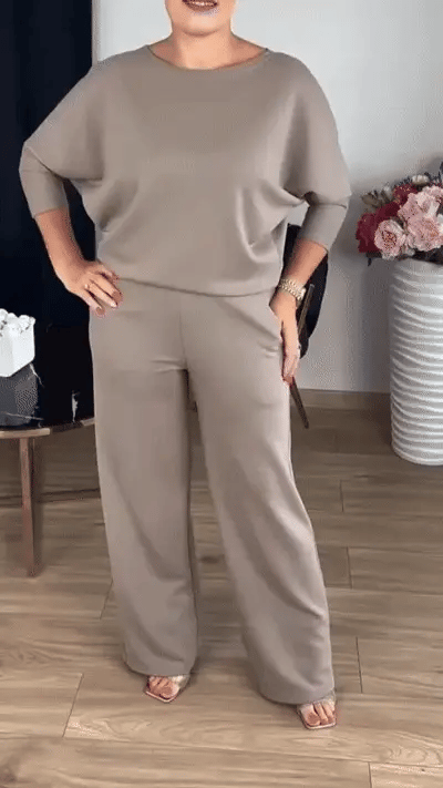 👌 Alt-i-ett-look – cardigan, topp og bukse i samme sett.