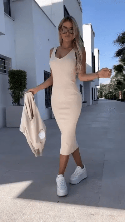 👗 Allsidig look – bruk kjolen alene eller kombiner med den løse V-genseren